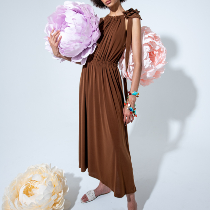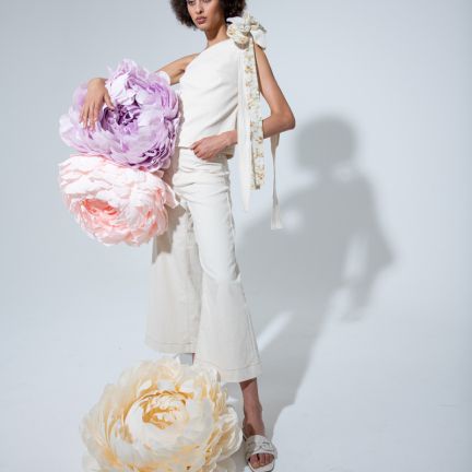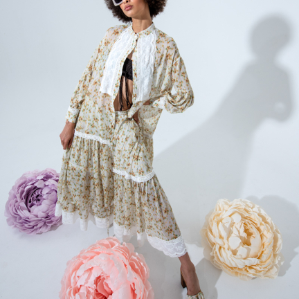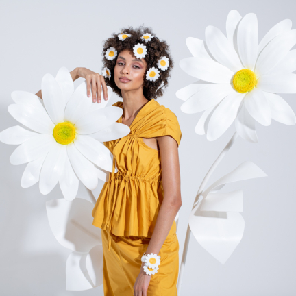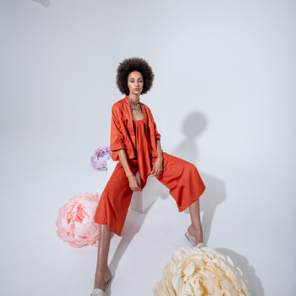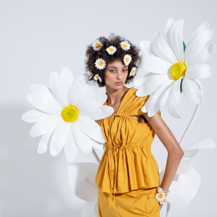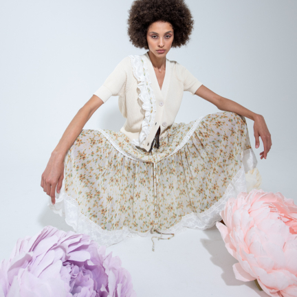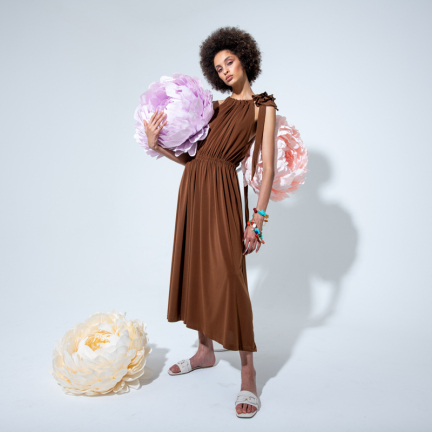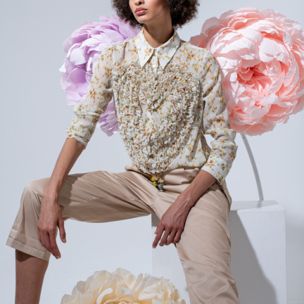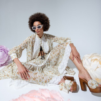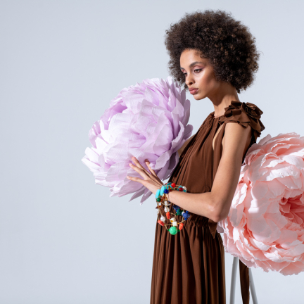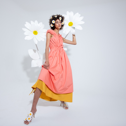 Uno shooting dinamico colorato e floreale per rappresentare la dinamicità del brand Rose A pois capace di vestire la donna con eleganza e spensieratezza.